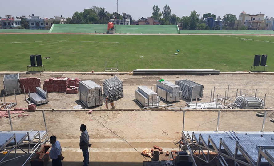 २ वैशाख, काठमाडौं । आठौं राष्ट्रिय खेलकुद प्रतियोगिता उद्घाटन र समापन हुने नेपालगन्ज रंगशालाको भीआईपी प्याराफिटको काम अन्तिम चरणमा पुगेको छ ।